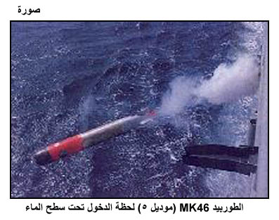 الطوربيد MK46 (موديل 5) لحظة الدخول تحت سطح الماء