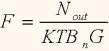 قدرة الضوضاء عند مخرج الجهاز، هي عبارة عن قدرة الضوضاء عند مدخل الجهاز بعد تكبيرها بمعامل التكبير G، مضافاً إليها قيمة إضافية من الضوضاء المولدة محليّاً داخل دوائر الاستقبال المختلفة أي أن: