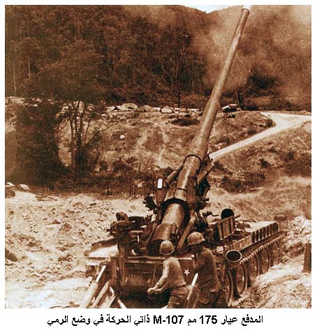 المدفع عيار 175 ممM-107 ذاتي الحركة في وضع الرمي
