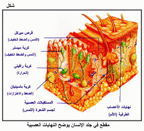 مقطع في جلد الإنسان يوضح النهايات العصبية