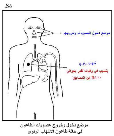 موضع دخول وخروج عصويات الطاعون في حالة طاعون الالتهاب الرئوي