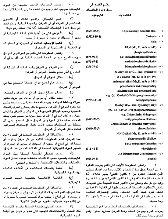 من أجل رصد امتثال العراق لتدمير أو إزالة الأسلحة المحددة في التقرير الرقم 687