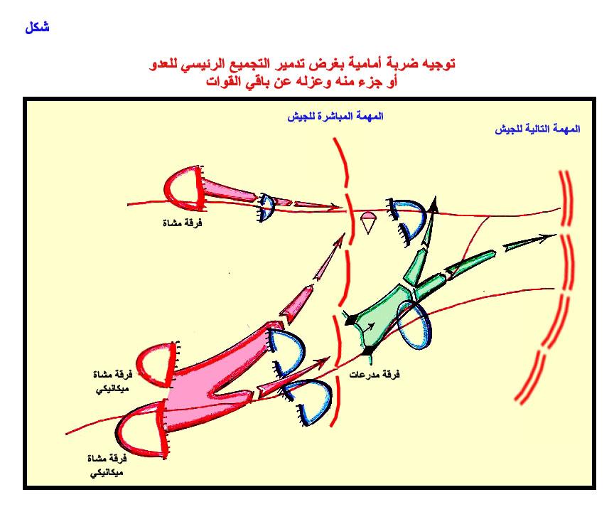 توجيه ضربة أمامية بغرض تدمير التجميع الرئيسي للعدو، أو جزء منه، وعزله عن باقي القوات