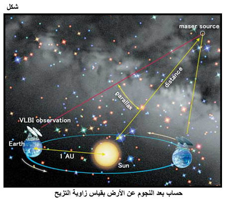 حساب بعد النجوم عن الأرض بقياس زاوية التزيح