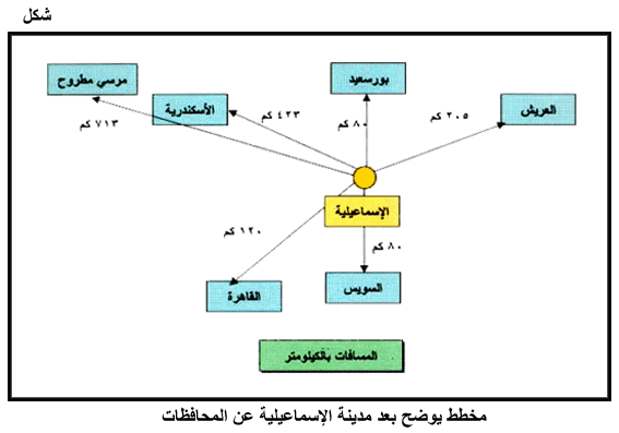 مخطط يوضح بعد مدينة الإسماعيلية عن المحافظات