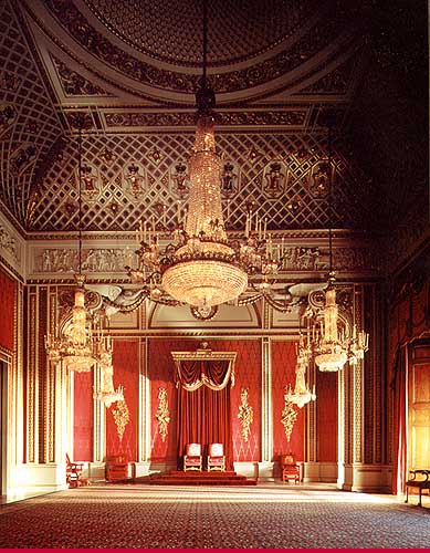 غرفة العرش، ويتصدرها كرسيا العرش، للملكة ودوق أدنبرة