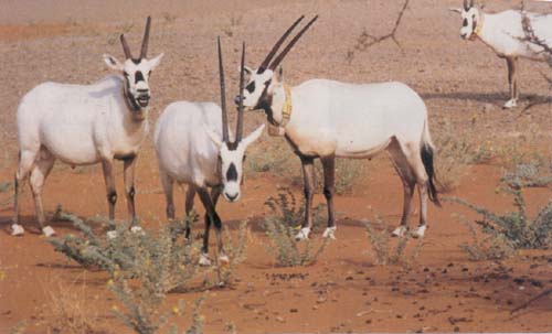 المها العربي، انقرض من جزيرة العرب، ويخضع لبرامج إكثار تحت الأسر وإعادة توطين
