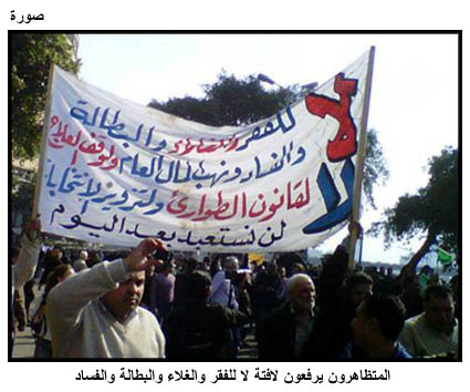 المتظاهرون يرفعون لافتة لا للفقر والغلاء والبطالة والفساد