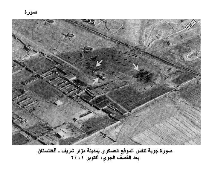 صورة جوية لنفس الموقع بمدينة مزار شريف بأفغانستان، بعد القصف الجوي، أكتوبر 2001