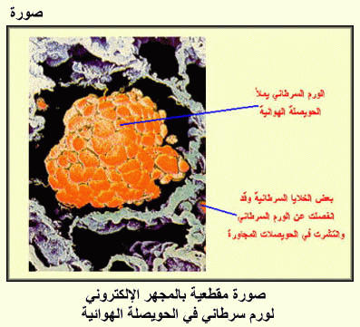 صورة مقطعية بالمجهر الإلكتروني لورم سرطاني في الحويصلة الهوائية