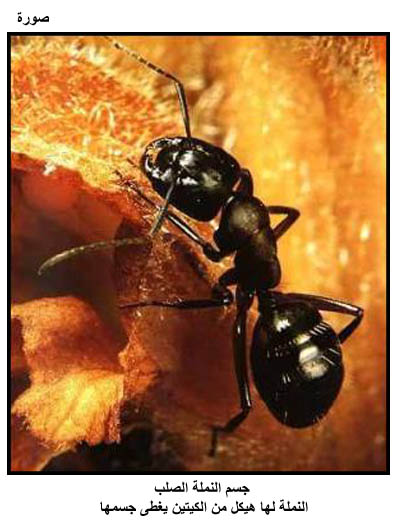 جسم النملة الصلب، النملة لها هيكل من الكيتين يغطى جسمها