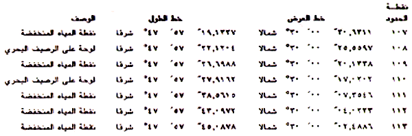 دال -   إحداثيات الحدود على امتداد خط المياه المنخفضة بين أم قصر وملتقى الخورين