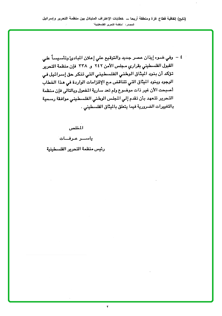 (تابع) خطابات الاعتراف المتبادل بين منظمة التحرير الفلسطينية وإسرائيل