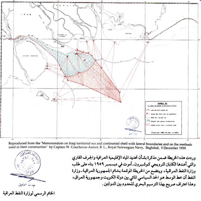 المياه الإقليمية العراقية والجرف القاري بين العراق والكويت، في ديسمبر 1959